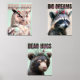 Niedliches Raccoon-, Owl- und Bärentriptychon-Kind Bilderwand Sets