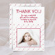 Niedliches Red Heart Pattern Foto Danke Karte. Einfach Dankeschön Karte für Kinder - Mädchen und Junge, vor allem für den 1. und 2. Geburtstag. Personalisieren Sie die Karte mit Ihrem Foto und Namen. Sie können auch die Nachricht ändern und Ihre eigene schreiben.