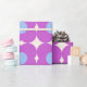 Dieses stilvolle Verpackungspapier zeichnet sich durch ein lustiges Retro-Blume-Muster in lila und blau aus.
