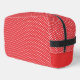NewParkLane - Niedliches personalisiertes Dopp-Kit mit einem Muster aus kleinen, weißen diagonalen Punkten vor einem hellroten Hintergrund mit einem runden Rahmen für Ihren Namen und Monogramm. Einfache Anpassung in Zazzle mit eigenem Text für ein personalisiertes Design. Alle Textstile, Farben und Größen können an Ihre Bedürfnisse angepasst werden. Karo diese Kollektion für passende Gegenstände wie eine Tüte aus Duffle und eine Kosmetiktüte heraus.