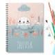 Personalisiertes niedliches, unterhaltsames Siegel, das unter dem Schnee auf See auftaucht, mit einer lächelnden, bezaubernden Wolke und einem marinen Leben.