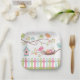Niedliche Vogelszene mit Babyküken in einem Nest, Vogelhaus und niedlichen farbenfrohen Zaun.