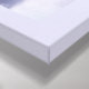 Leinwand Wandkunst mit einem Foto eines Ingwer Kätzchens, das auf einer weichen, weißen und roten Weihnachtsmannmütze sitzt. Unscharfe glitzernde Lichter auf beide Seiten.