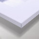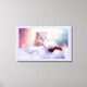 Leinwand Wandkunst mit einem Foto eines Ingwer Kätzchens, das auf einer weichen, weißen und roten Weihnachtsmannmütze sitzt. Unscharfe glitzernde Lichter auf beide Seiten.