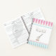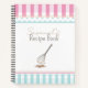 Ein niedliches Wendelheft, um Ihre Lieblingsrezepte, Kuchen, Kuchen, Desserts und vieles mehr hinzuzufügen, in rosa und blauen Streifen, die ihm einen Bäckerei-Look geben, mit einem Whisk Tropfen Teig.