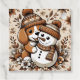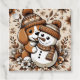 Niedliches WinterDuo: Hund in Gemustertem Hut und Schneemann umgeben von Blumenmotiven