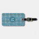 Niedliche Winter Woodland Gepäckmarke, die Sie mit Ihrem Initial auf der Vorderseite und Kontaktinformationen auf der Rückseite personalisieren. Dieses niedliche Nordic Winter Pullover Muster basiert auf dem Thema der klassischen Fair Isle Strickdesigns. Das Muster besteht aus blauen und weißen Kreisen und Diamantstreifen. Jede Form hat ein anderes niedliches Wintermotiv. Es gibt Tiere wie Kaninchen, Eule, Fuchs und Bär. Es gibt auch einen Kiefernbaum mit Schnee, zwei Schneeflocken und einen Kiefernkegel. Zwischen den Designs haben Sie noch eine Schneeflocke und ein Diamant-Design.