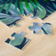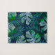 Watercolor tropics palms and monstera leaves on a navy blue background.
