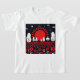 The painting depicts a night landscape with a field of red flowers and white trees. The large red sun dominates the center of the painting, and the dark sky is dotted with the moon and white clouds. The artistic style is minimalist and graphic, with strong contrasting colors.