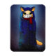 Eine Katze trägt nachts im Regen eine Gesichtsmaske.
