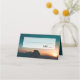 Elegante Hochzeitsvorlage für die Platzkarte. Hintergrund ist ein wunderschönes Foto eines dunkeltürkisblauen Nachthimmels mit einer Galaxie von Sternen oben und einem Sonnenaufgang über den Bergen unten. Der gesamte Text ist leicht anpassbar und erscheint in einer stilvollen Kombination aus Schrift und serifenloser Typografie.