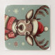 Dieses Design zeigt ein Rentier mit einem Weihnachtshut und einem bunten Schal. Der Rentier hat große Hörner und ein bösartiges Lächeln. Der Boden ist mit Schneeflocken verziert. Dieses Vintage-Design ist ideal, um den Winter und die Weihnachtsmagie zu feiern.