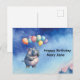Nilpferd-Geburtstag mit Luftballons Postkarte