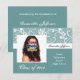 Personnaliser l'année, photo et texte! Invitations de diplômes, Design classique avec un design bleu clair aqua turquoise. Les vignes et les fleurs blanches et aquacoles sont idéales pour la graduation féminine. Excellent comme une faire-part de graduation ou une invitation à une fête de graduation.