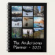 Dieser individuell gestaltete Jahresplaner verfügt über einen soliden Farbhintergrund mit neun Foto Rasterlayout, Familienname und dem Jahr auf der Titelseite. Enthält eine monatliche Übersicht, wöchentliche Pläne und enthält eine Seite mit Planneraufklebern. Erhältlich in zwei Größen, glänzend Softcover oder satinmatte Hardcover, und Ihre Wahl der Drahtspiralspinenfarbe in Weiß, Schwarz oder Gold.