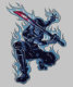Blue Ninja T-Shirt Design avec un ninja cool, avec une épée sanglante et un shuriken à la main, prêt à se battre entouré d'une flamme bleue!.