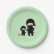 Adorable Paar von Vater und Sohn Ninjas in schwarz gekleidet.
