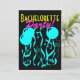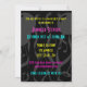 Bachelorette couleur néon invitations modèle. Illustration de fête avec flûtes de champagne, ballons, notes de musique et confettis. Invitations personnalisables avec le néon amusant et le design noir. Lettres rétro néon rose jaune et turquoise.