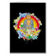 Meditierender Buddha sitzt friedlich unter einer bunten Reihe Sternen, Regenbogen, Blumen und Yin Yang Symbolen! Eine Explosion von buntem und von Mindfulness! Auge, das Buddha-Geschenke fängt!