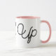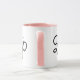 Planieren Sie herauf Writtenin schwarzes Skript auf einer weißen und rosa Tasse