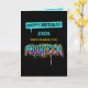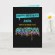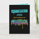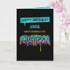 Un graffiti désordonné en violet, bleu et orange, pour quatorze ans. Customisez avec le nom du destinataire.
