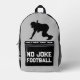 Leicht und haltbar, unser Retro No Joke Football Linewoman Rucksack ist genau das, was Sie brauchen. Das geräumige Interieur eignet sich hervorragend für Reisen, Filmmagungen, Gymnastik oder mobile Speicheranwendungen. Bringen Sie Ihr Zeug mit! Mit verstellbaren gepolsterten Schultergurten, zwei Kammern an der Innenseite für die Laptop-Lagerung, Meshsiegeltaschen und einem Kennzeichen. Dieser Rucksack ist so zäh und robust wie ein offensives Line-Schild.