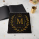 Welcome your distinguished guests with this elegant verso page featuring bilingual greetings in Arabic and French. The layout includes refined gold lines for name, date, and message entries, framed by regal flourishes and the NMKY monogram emblem. Designed on a deep black background with gold typography, this page offers institutional sophistication and ceremonial warmth. Perfect for formal events, commemorations, and high-profile receptions.