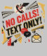 Let’s be real: if it isn't a 911 emergency, it probably could have been a text message. 📱 This is a bold graphic design featuring text reading 'No Calls! Text Only!' with a No-phone-call symbol, and a text with a checkmark symbol. The layout uses a striking color palette of red, black, and gold that demands attention.
