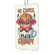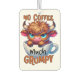 A funny and sarcastic colorful design showcases an adorable highland cow perched in an empty coffee cup. With a grumpy expression, big blue eyes, and brown fur, the cow adds a charming touch. The vibrant text reads, "No coffee much grumpy." This design is featured on a variety of products, making it a perfect gift for coffee enthusiasts.