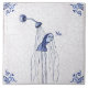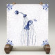 This striking ceramic tile pairs deadpan humor with classic Delft blue aesthetics, depicting a melancholy figure standing under a running shower accompanied by the simple word “No.” Rendered in expressive ink lines and translucent cobalt watercolor washes, the illustration echoes traditional Dutch blue-and-white pottery while introducing a distinctly modern, existential tone. The aged crackle-glaze background and ornamental corner flourishes enhance the antique ceramic feel, creating a compelling contrast between timeless craftsmanship and contemporary sarcasm. Perfect for bathrooms, powder rooms, or as an unexpected statement piece for lovers of dark humor and blue-and-white decor.