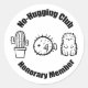 Ein humorvolles Design mit einem Topfkaktus, einem Pufferfisch und einem Igel, alles umgeben von dem Text "No-Hugging Club Ehrenmitglied". Die spielerische Illustration hebt Kreaturen hervor, die für ihren spikösen Auftritt bekannt sind, was bedeutet, dass sie vielleicht keine Schläge genießen.