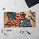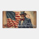 A striking patriotic illustration inspired by Uncle Sam standing before a flowing American flag. The design reflects the historic American ideal of freedom and independence, symbolizing a nation built on liberty and the spirit of “no kings.”