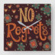 "No Regrets"-Uhr Quadratische Wanduhr