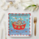 Dieses schöne Bild eines Stifts und Aquarellbilders von Helen McCartney Designs zeigt eine Gruppe süßer Tiere, die an Bord der Noah's Ark zusammengepeitscht werden.