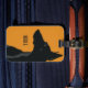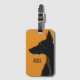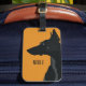 Ein minimalistisches Gepäckanhänger-Design für Hundebesitzer oder Liebhaber, das auf gelbem Hintergrund angebracht wurde. Das Design führt eine Silhouette eines schwarzen Doberman mit dem Standard anpassbaren Dank.