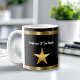 Nobler Angestellter der Monatskaffee-Tassen einschließlich einen Gold farbigen Stern und eine geometrische Linie Entwurfselement zusammen mit Text-Vorlagen, die Sie besonders anfertigen können. Entwarf, hervorragende Leistung und Produktivität bei der Arbeit zu vergüten. Entwurf wird auf beiden Seiten von der Kaffeetasse für die rechten oder linkshändigen Trinker angezeigt.