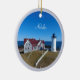 Nobska Lighthouse Cape Cod Weihnachtsfeier Keramik Ornament. Dieses Design besticht durch das wunderschöne Nobska Licht in Falmouth, Massachusetts, fotografiert mit Blick auf den Atlantik. Personalisieren Sie das Skript mit Ihrem Familiennamen oder dem Datum.