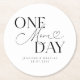 Minimalistischer Untersetzer zum Hochzeitessen mit Probe mit Typografie, der "noch einen Tag" sagt. Der Hintergrund ist weiß.