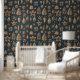Le papier peint "Christmas on the Wall" évoque une ambiance festive parfaite pour la saison des fêtes. Avec un arrière - plan rouge foncé et des décorations dorées.