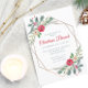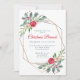 Elégante invitation de brunch de Noël avec bouquets d'aquarelle de fleurs saisonnières, baies, saint et verdure sur un cadre géométrique en cuivre d'or. Personnalisez facilement le type d'événement (brunch, dîner, thé, etc.), ainsi que d'autres détails de l'événement dans un script moderne rouge et vert et la typographie.