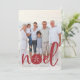 La carte de vacances chic de style côtier ajoute une touche de plage à vos voeux de Noël. Parfait pour partager une photo de vacances, ou pour les familles qui vivent dans les régions côtières, tropicales, chaudes ou les îles, ce design élégant comprend votre photo verticale ou portrait préférée avec "noel" recouvert de lettres rouges festives et un dollar de sable prenant la place de la lettre "o". Ajoutez votre message de vacances personnalisé et votre nom ou nom de famille, ainsi que trois photos et un message personnalisé au dos.