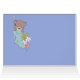 Sur le devant de cette carte de voeux de Noël, un traîneau porte des cadeaux aux enveloppements éclatants et deux petits ours bruns. L'un porte un chapeau de Père Noël, l'autre un pull d'hiver. Le traîneau est tiré par un seul renne tandis que des flocons de neige tombent autour d'eux. Le texte blanc en haut dit "Joyeux Noël". L'intérieur de la carte a l'image d'un ours dans un bas bleu, et plusieurs champs de texte pour vous de customiser.