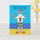 Caricature du Père Noël debout sur une plage en tongs, abat-jour et shorts à motifs saints. Les mots 'Noël à l'invitation du Parti en juillet' accompagnent l'image.