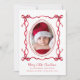 Un beau faire-part de naissance photo de la saison des Fêtes avec l'image de votre nouveau-né présentée dans un cadre ovale à pointes rouges peint à la main et une bordure à charpente ondulée fantaisiste composée de rubans et arcs rouges, "Joyeux Noël" dans un script rouge ludique, et le nom et les statistiques de naissance de votre bébé en lettres modernes simples. Au verso, ajoutez 3 photos supplémentaires et un accueil saisonnier personnalisé.