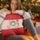 Les symboles de la saison expriment votre souhait de JOIE sur ce coussin sucré.