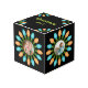 Ce cube photo avec 4 images faciles à éditer a un thème de vacances avec des cercles graphiques colorés d'ampoules festives de Noël en bleu et orange. Le texte peut être personnalisé. Espace réservé Crédit photo : Photographie © Storytree Studios, Stanford, CA