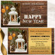 Carte de visite avec une lanterne éclairée à la bougie avec un cône de pin et des boules de Noël dorées sur un arrière - plan en bois rustique, avec vos souhaits de vacances personnalisés. La zone d'arrière - plan de texte doré au dos peut être supprimée si vous n'en avez pas besoin. Ce carte de visite est une belle façon de dire merci aux clients existants ou bienvenue dans de nouveaux clients.