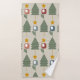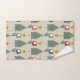 Cet ensemble de serviettes présente un design moderne du milieu du siècle d'arbres en triangles, fleurs en carré et ovales, étoiles en vert, bleu et jaune.