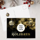 Cette carte postale élégante et élégante de vacances d'affaires est la meilleure façon d'envoyer des voeux chaleureux à vos employés et clients cette saison de Noël. Doté d'une superbe décoration de Noël noir et or aux accents de papier doré, cette carte postale de vacances exhale le raffinement. Ajoutez le logo de votre entreprise pour une touche personnalisée et montrez à vos clients et clients combien vous appréciez leur entreprise. Dites "Joyeux Vacances" dans le style avec cette carte postale de vacances d'entreprise chic et élégant.