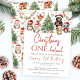 Jolie forêt boisée animaux Noël onederland première invitation fête d'anniversaire.